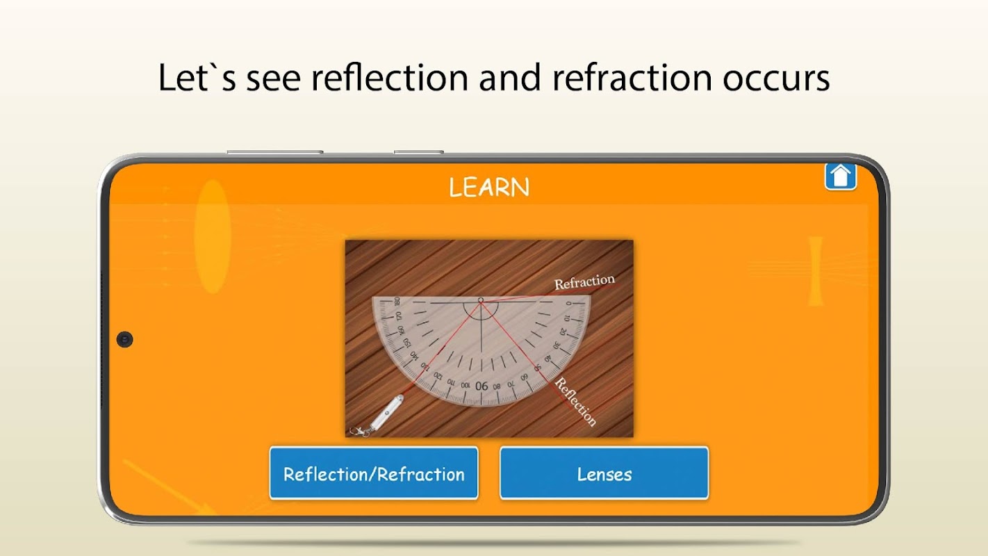 แอปการศึกษานี้มอบประสบการณ์การเรียนรู้แบบโต้ตอบที่ครอบคลุมสำหรับนักเรียนเพื่อเรียนรู้และเข้าใจพื้นฐานของการสะท้อนและการหักเหของแสง