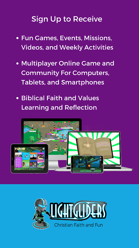 ผู้ปกครอง: Lightgliders คือโลกเสมือนจริงของศรัทธาคริสเตียน ความสนุกสนาน และเกมสำหรับเด็กและครอบครัว การสมัครสมาชิก Lightgliders ช่วยให้ลูก ๆ ของคุณมีทางเลือกที่ปลอดภัย สนุกสนาน และอิงตามศรัทธาสำหรับเวลาหน้าจอของพวกเขา โดยมีเนื้อหาตามพระคัมภีร์ที่อัปเดตทุกสัปดาห์ แต่นั่นไม่ใช่ทั้งหมด! Lightgliders ยังส่งทรัพยากรรายสัปดาห์ให้กับคุณเพื่อส่งเสริมการสนทนาที่มีความหมายกับเด็ก ๆ ที่คุณห่วงใยตลอดทั้งสัปดาห์อีกด้วย