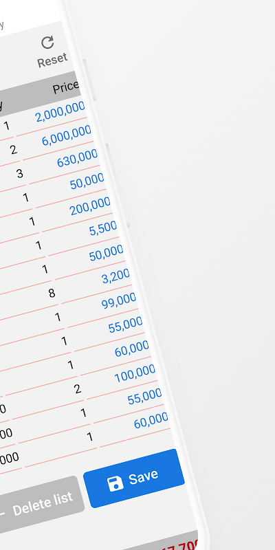 • กรอกชื่อ ราคาต่อหน่วย และปริมาณ และคำนวณราคาได้อย่างง่ายดาย