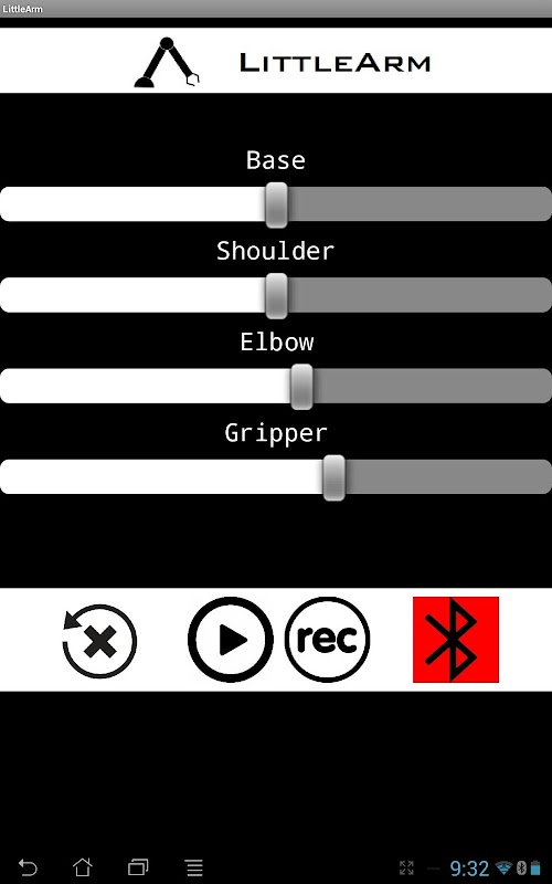 This app controls the LittleArm Arduino robot arm using bluetooth