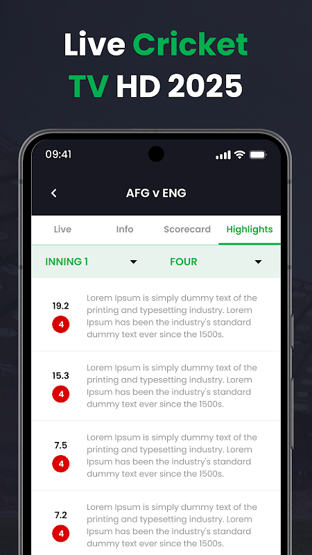 ในแอพนี้ การแข่งขันคริกเก็ตสดพร้อมคะแนนแบบเรียลไทม์และการอัปเดตการแข่งขันทันที เชื่อมต่อกับทุกช่วงเวลาของเกม—ทุกที่ทุกเวลา!