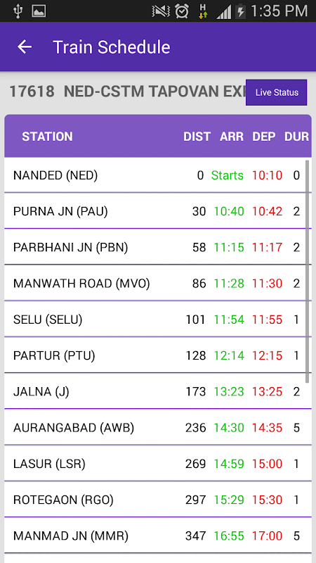 สถานะรถไฟสดเป็นที่เร็วที่สุดง่ายที่สุดและการประยุกต์ใช้แสงมากที่จะหาข้อมูลที่จำเป็นทุกอย่างเกี่ยวกับรถไฟอินเดียมีอินเตอร์เฟซพื้นเมืองเย็น คุณจะได้รับสถานะรถไฟเกี่ยวกับความล่าช้าในปัจจุบันและสถานะที่จุดใดก็ได้ขณะที่อยู่ในหรือก่อนการเดินทางรวมทั้งคุณสามารถได้รับข้อมูลเช่นความพร้อมและกำหนดการ