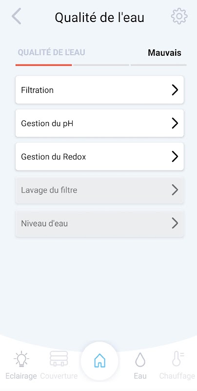 Interface that allows the management of the main swimming pool parameters
