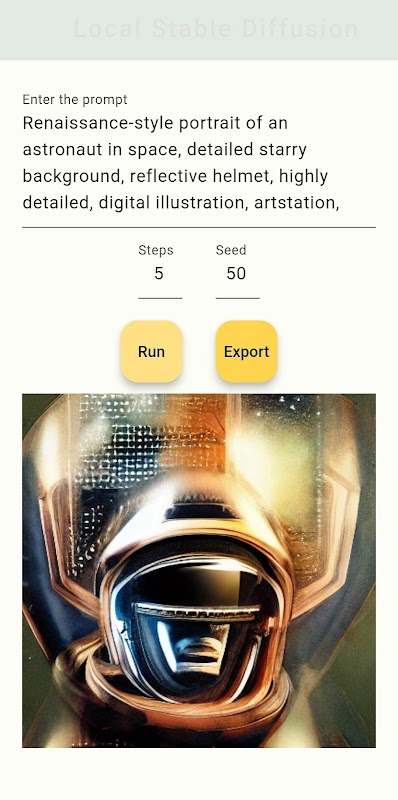 ด้วย Local Stable Diffusion คุณจะมีนักออกแบบกราฟิก AI ที่ล้ำสมัยบนโทรศัพท์ของคุณตลอดไป! ดูว่าคุณสามารถกระตุ้นให้สร้างอะไรได้บ้าง!