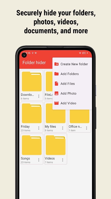 กำลังมองหาวิธีที่มีประสิทธิภาพในการซ่อน/ล็อกโฟลเดอร์และไฟล์สำคัญของคุณอยู่หรือเปล่า? Folder Hider คือโซลูชันความเป็นส่วนตัวที่ดีที่สุดของคุณ โปรแกรมล็อกโฟลเดอร์ที่ปลอดภัยนี้จะช่วยปกป้องเนื้อหาสำคัญของคุณจากสายตาของคนอื่น เหมาะอย่างยิ่งสำหรับการปกป้องรูปภาพ วิดีโอ เอกสารส่วนตัว และอื่นๆ จากใครก็ตามที่อาจเข้าถึงโทรศัพท์ของคุณ
