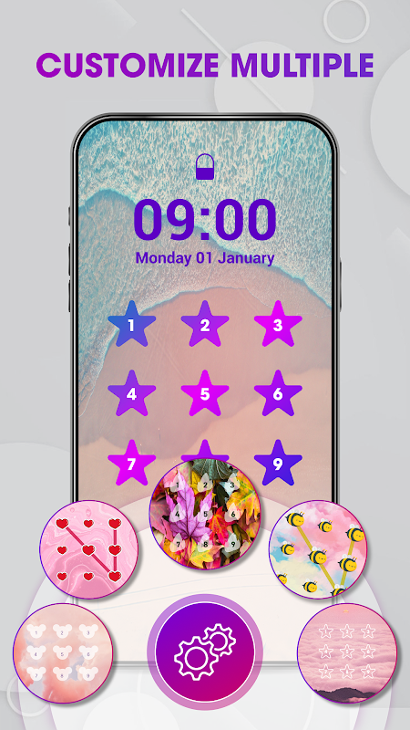 ด้วยรหัสผ่านหน้าจอโทรศัพท์แอพนี้ คุณจะสามารถเข้าถึงและเข้าถึงตัวเลือกต่างๆ ได้อย่างรวดเร็วสำหรับการปรับแต่งหน้าจอล็อคของคุณ รวมถึง: วอลเปเปอร์ล็อคหน้าจอ รหัสพิน และหน้าจอล็อครูปแบบ เลือกจากธีมล็อคหน้าจอต่างๆ เพื่อสร้างแอปที่ไม่ซ้ำใครและสนุกสนาน