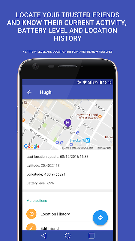 • Know your friends' battery level. (Premium feature)