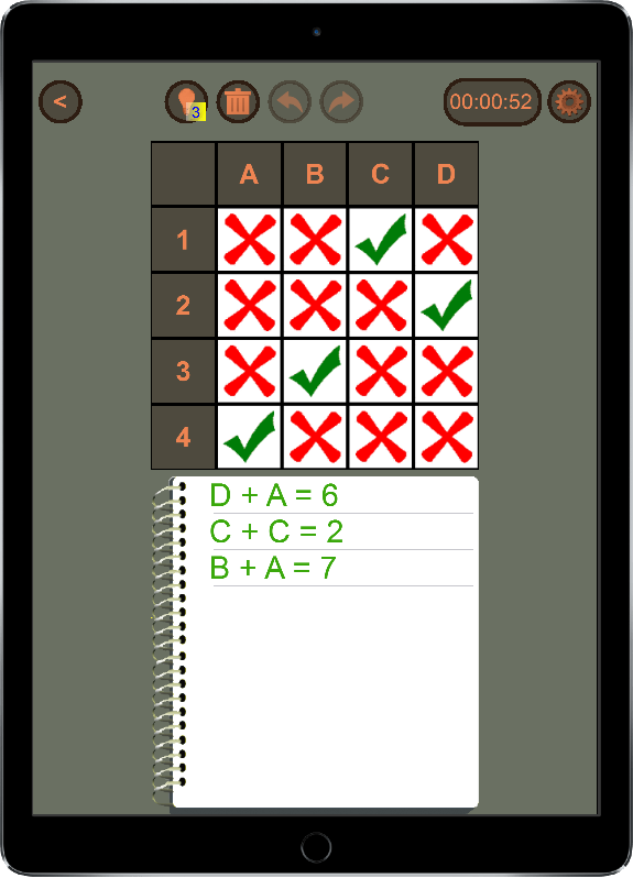 เกมจะจบลงเมื่อกำหนดค่าตัวแปรทั้งหมดอย่างถูกต้อง