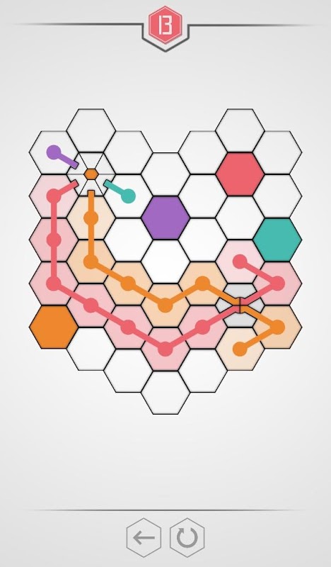 Connect color lines, from the crystal and to the corresponding color blocks. Go through the levels. Help connect crystal color lines on a field of hex.