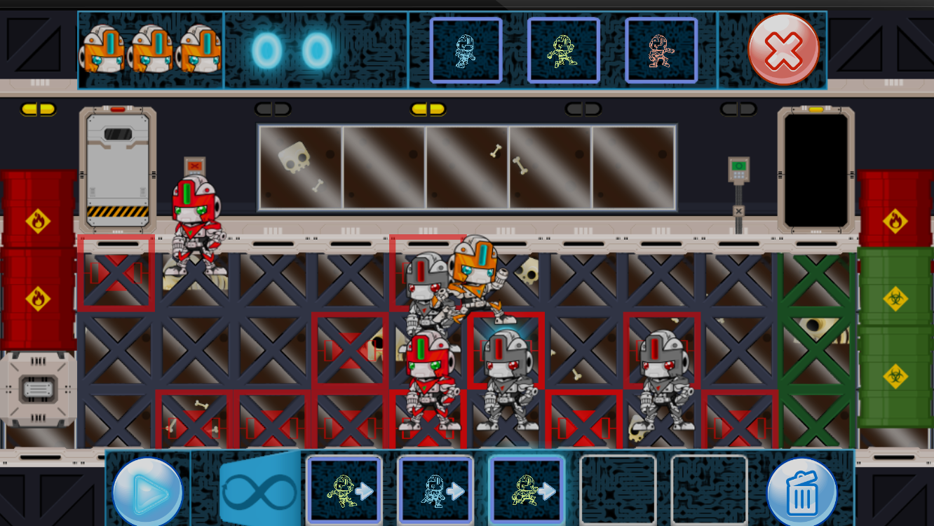 สั่งให้หุ่นยนต์วิ่ง กระโดด และโจมตีเพื่อหลีกเลี่ยงสิ่งกีดขวางและแซงหน้าศัตรู! วาดแผนและปฏิบัติตามเพื่อไปถึงทางออก! ห้องต่างๆ ของสถานที่นั้นเต็มไปด้วยอันตราย ดังนั้นวางแผนการกระทำของคุณอย่างรอบคอบ... ทักษะการแก้ปัญหาของคุณจะถูกทดสอบ!