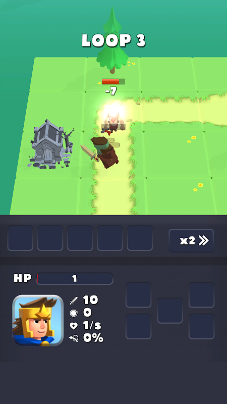 Watch your hero, fight with various enemies, set up helpful buildings each loop!