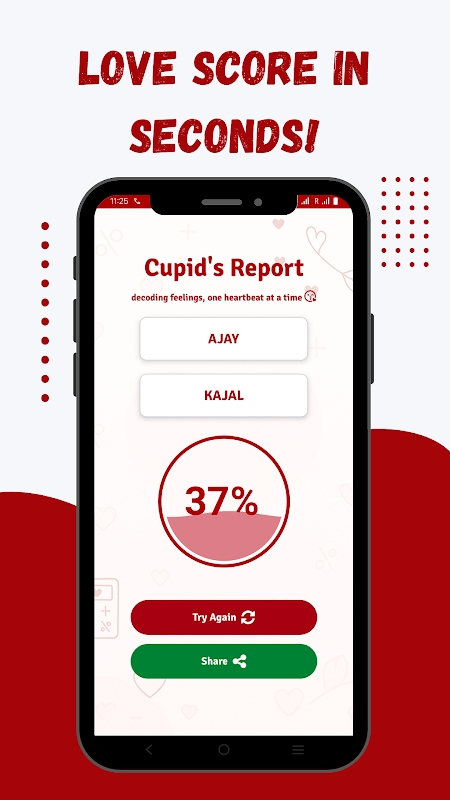Love Calculator by Name สร้างขึ้นเพื่อความบันเทิงเท่านั้น ใช้แอปทดสอบความรักนี้เพื่อความสนุกสนานและแบ่งปันผลลัพธ์กับเพื่อนๆ