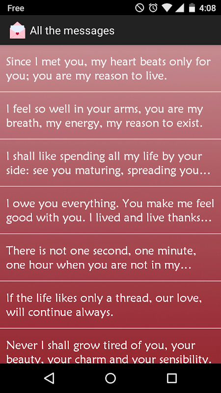 เพียงแค่เปิดโปรแกรมให้เลือกวลีที่คุณต้องการที่จะส่งให้กับคนรักของคุณและส่ง ประโยคที่มีอยู่ตามประเภทและคุณสามารถเก็บวลีที่คุณชื่นชอบ
