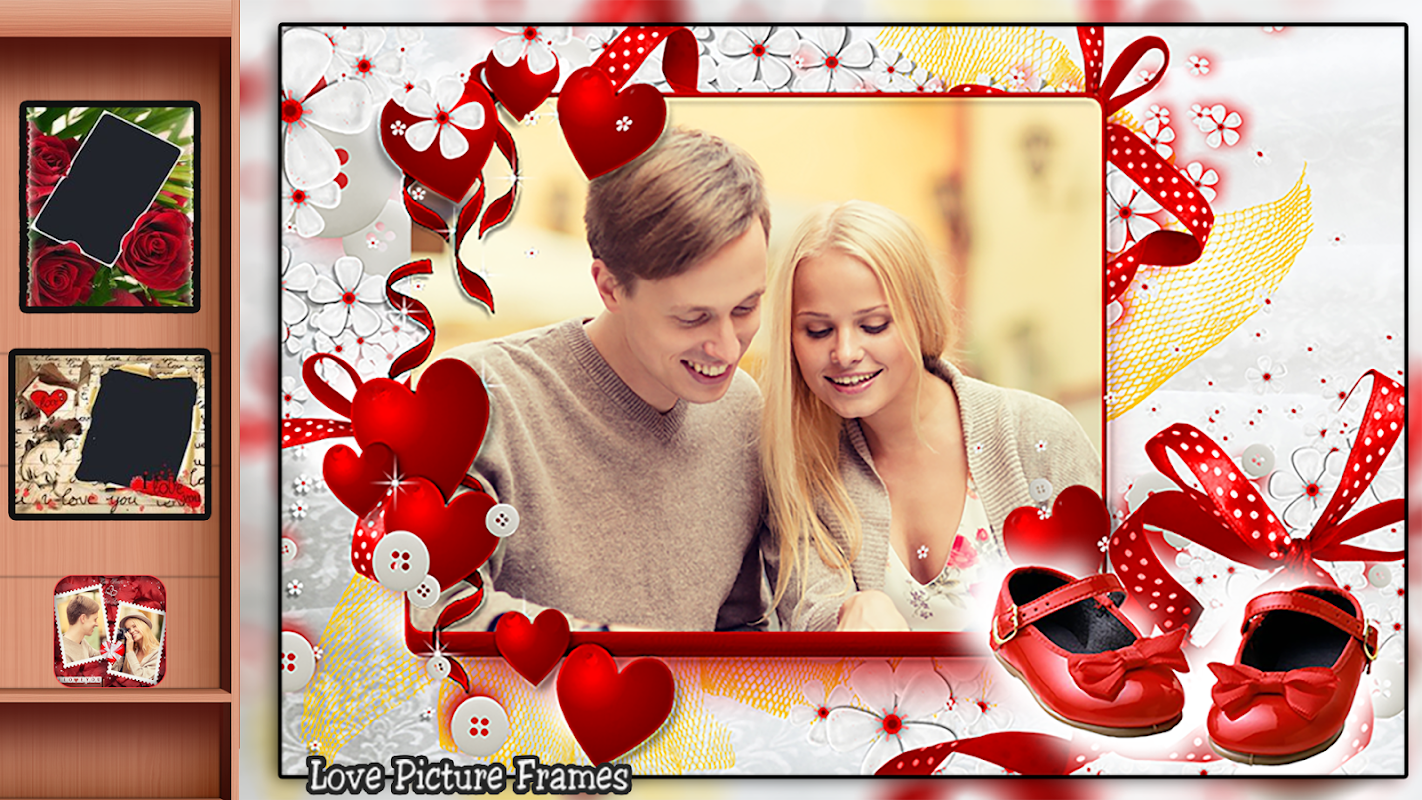 "Love Photo Frames" เป็นแอพพลิเคชั่นภาพตัดปะที่มีกรอบรูปวันวาเลนไทน์สำหรับคู่รักที่มีความรักด้วยอินเทอร์เฟซที่เรียบง่ายและใช้งานง่าย มันจะสร้างกรอบรูปวันวาเลนไทน์ที่ยอดเยี่ยมด้วยความคมชัดสูง