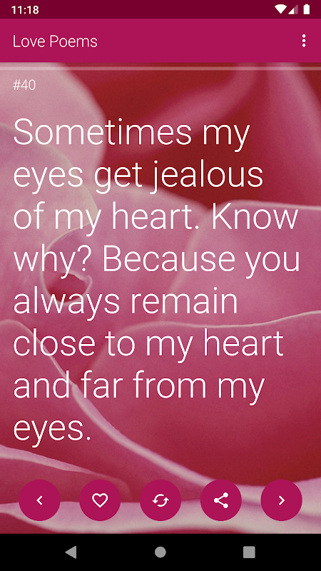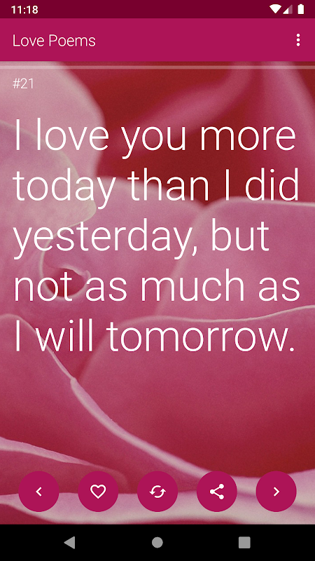 อย่างบ้าคลั่งในความรักกับสาวหรือเด็กผู้ชายในฝันของคุณ? ถ้าเป็นเช่นนั้นให้แน่ใจว่าจะให้พวกเขาทราบ แต่มักจะไม่ทำซ้ำตัวเอง! ใช้โปรแกรมของเราและทำให้แน่ใจว่าคุณมีชุดใหญ่ของที่ไม่ซ้ำกันข้อความที่น่ารักและอบอุ่นใจที่จะช่วยให้คุณอย่างชัดเจนถ่ายทอดความรู้สึกของคุณทั้งหมด! ส่งเป็น SMS หรือผ่านทาง Facebook, WhatsApp หรืออีเมล์ โปรดตรวจสอบใบสมัครของคุณเป็นประจำในขณะที่คุณจะสามารถเข้าถึงเนื้อหาใหม่และการออกแบบมาเป็นพิเศษบทกวีรัก เราจะปรับปรุงอย่างสม่ำเสมอเพื่อให้คุณไม่ต้องส่งข้อความเดียวกันสองครั้ง!
