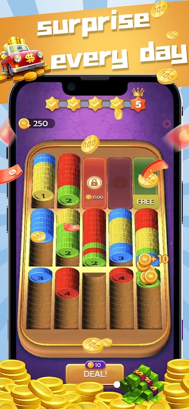 เหรียญหลายประเภท: จัดเรียงเหรียญประเภทต่างๆ เช่น ตามสี ขนาด และปริมาณ ซึ่งจะเพิ่มความซับซ้อนและความหลากหลายให้กับเกม