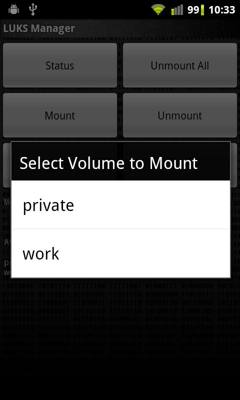 ผู้จัดการ LUKS ให้ on-the-fly การเข้ารหัส (AES ค่าเริ่มต้น) ไปยังโฟลเดอร์เสมือนบนอุปกรณ์ Android