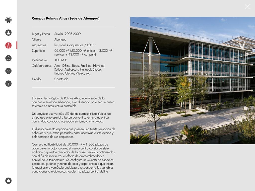 Mediante esta พลิเคชันเอ Usuario podrÅ disfrutar เดinformación sobre เอ Estudio español luis vidal arquitectos + y una Selección de Proyectos, ademásเด Contenido en realidad aumentada vinculado la Exposicion แข่งขัน: Cuatro modelos 3D, วิดีโอ Siete, Tres y Galerias ยกเลิก Libro Interactivo Que contiene una Selecciónเดอลาและเผยแพร่ vidal luis + สถาปนิก จากกระบวนการไปสู่ผลลัพธ์ที่