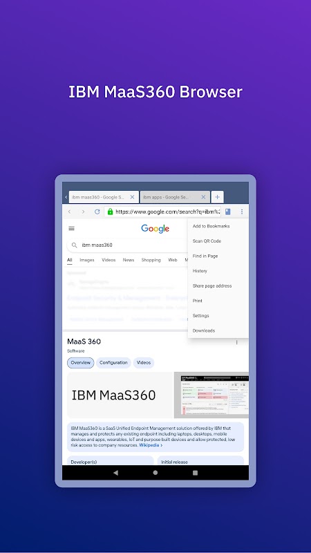 IBM MaaS360 Browser มอบวิธีที่ง่ายและปลอดภัยสำหรับผู้ใช้ในการเข้าถึงเนื้อหาเว็บจากอุปกรณ์ Android