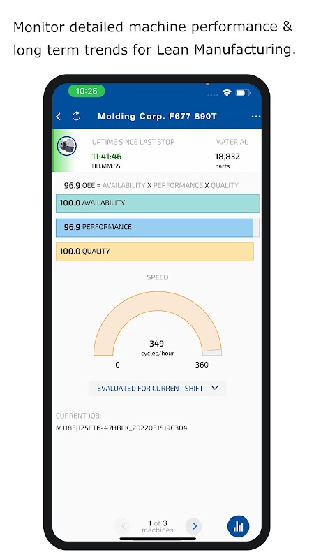 Shibaura Machine owners can remotely monitor the productivity of their machines using this app. Key performance indicators supporting best practices in lean manufacturing such as Operational Equipment Effectiveness, OEE, are incorporated in visual status displays and trends.