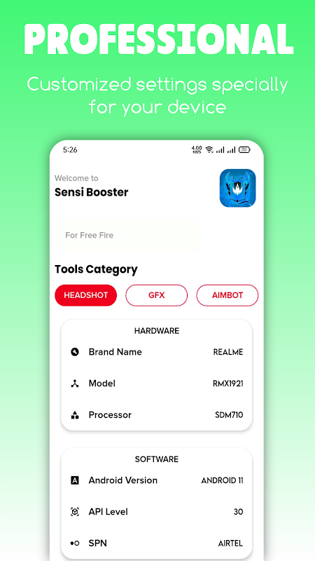 This app allows you entertain yourself with one tap shots. It have gfx tool guide and sensitivity settings. By using this custom HUD and sensi you can easily improve your skills and become a pro one tap player.