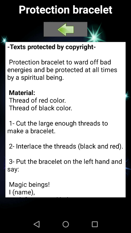 The magic bracelets are to try to ask for protection or to attract positive energy around us like a talisman you can find other bracelet for different situations within the application.