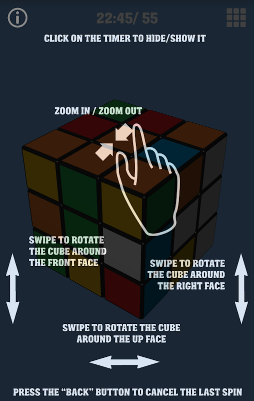 - ขนาดลูกบาศก์ที่มีให้เลือก - 4x4x4, 5x5x5, 6x6x6, 7x7x7;