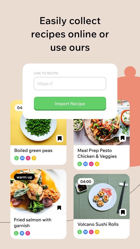 สร้างตำราอาหารเฉพาะบุคคล: นำเข้าสูตรอาหารจากเว็บไซต์อื่นหรือเพิ่มสูตรอาหารของคุณเอง แต่ละสูตรมีป้ายกำกับสำหรับสมาชิกครอบครัวที่เหมาะสม ทำให้การวางแผนมื้ออาหารครอบคลุมและง่ายดาย.