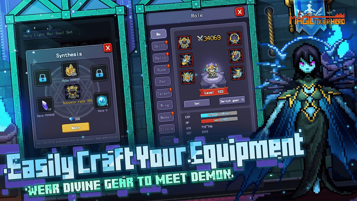 อัปเกรดฮีโร่ของคุณ ปลดล็อกคาถาและความสามารถใหม่ๆ และปรับแต่งอุปกรณ์เพื่อสร้างทีมที่น่าเกรงขามที่สุดเท่าที่จะจินตนาการได้ ดำดิ่งลึกเข้าไปใน Magic Tower เปิดเผยความลับและเผชิญกับความท้าทายที่น่ากลัวมากขึ้นเรื่อยๆ