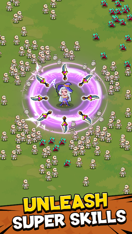 มีดเล็งเป้าหมายอัตโนมัติจะวนรอบฮีโร่ของคุณ ทำลายล้างฝูงมอนสเตอร์