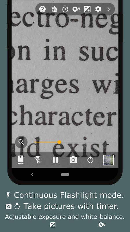 แว่นขยายพร้อมแสง - Flash to Torch หยุดชั่วคราวขณะซูมและถ่ายภาพ