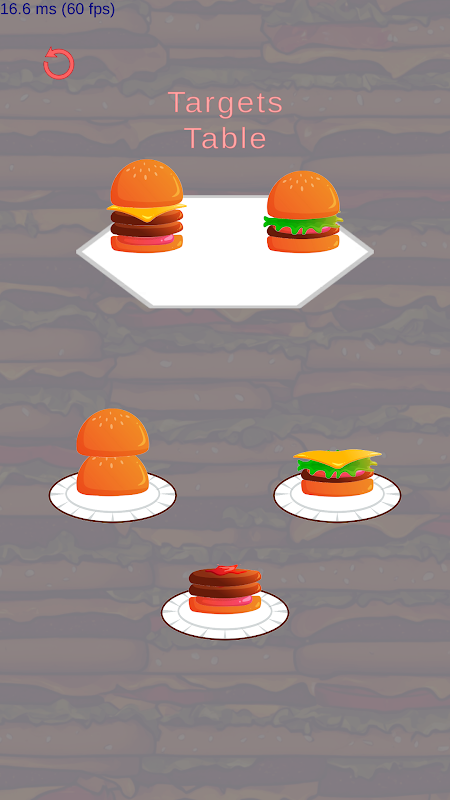 พยายามเตรียมเบอร์เกอร์ตามสั่งโดยวางส่วนผสมซ้อนกันบนจาน คลิกที่จานที่มีเพื่อวางส่วนผสมซ้อนกัน ตรวจสอบให้แน่ใจว่าคุณวางส่วนผสมตามลำดับที่ถูกต้อง