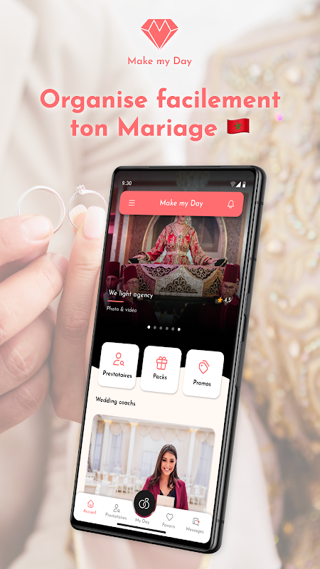 เจ้าสาวเร็วๆ นี้ ? ค้นพบ “Make my Day” แอปพลิเคชันฟรีแอปแรกที่จะช่วยให้คุณจัดงานแต่งงานในโมร็อกโกได้อย่างง่ายดาย! ไม่มีความเครียดหรือปวดหัวอีกต่อไป ทุกสิ่งที่คุณต้องการในการจัดงานแต่งงานอยู่ใกล้แค่ปลายนิ้ว: