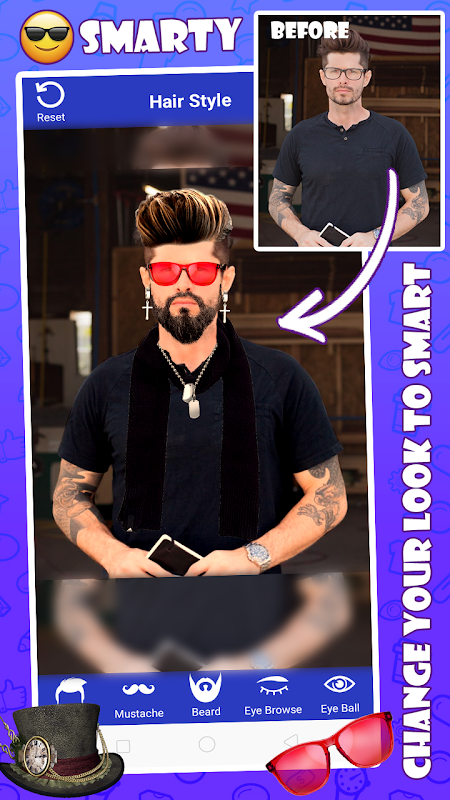 เราได้เพิ่มหนวดเคราคิ้วลูกตาหลายประเภทสำหรับการแก้ไขภาพผู้ชาย ในแอปพลิเคชั่นนี้เพื่อให้ผู้ชายดูสวยขึ้นด้วยอุปกรณ์เสริมทุกประเภทเช่นแว่นกันแดดหมวกสโตลเน็คไทโซ่ต่างหูและอื่น ๆ อีกมากมาย