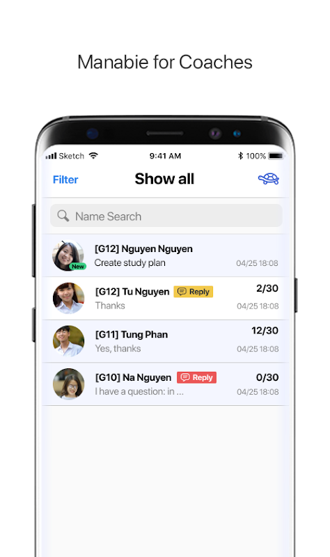 "Manabie - Coach App" ช่วยให้คุณเชื่อมต่อกับนักเรียนและแนะนำพวกเขาตลอดเส้นทางการศึกษาของพวกเขา คุณสามารถกำหนดแผนการศึกษาส่วนบุคคลและติดตามผลการปฏิบัติงานของนักเรียนทำให้คุณสามารถให้ข้อเสนอแนะที่น่าสนใจและมีประสิทธิภาพเพื่อช่วยให้พวกเขาบรรลุเป้าหมาย
