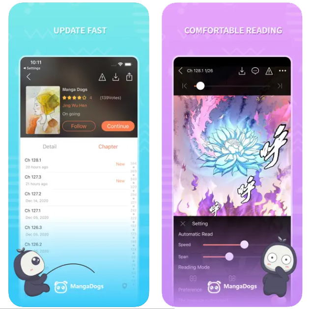 - Push Notification: get instantly notified when your favorite manga has new chapters