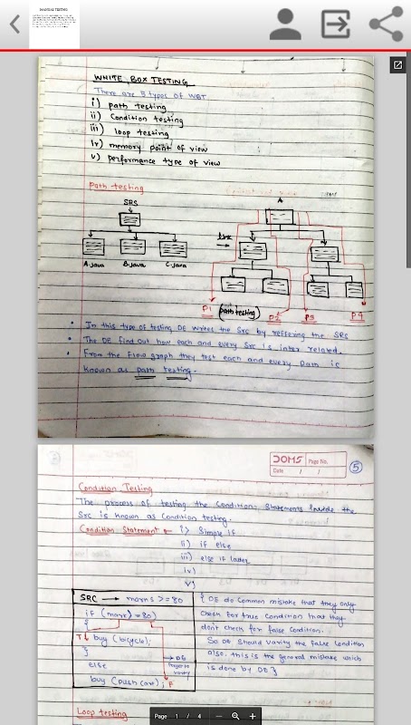 บันทึกย่อที่เขียนด้วยลายมือของหลักสูตรการทดสอบด้วยตนเอง