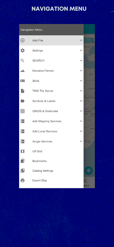 แอพนี้มีคุณสมบัติรูปแบบ JSON ของแคตตาล็อกข้อมูลที่อนุญาตให้กำหนดค่าบริการแผนที่ออนไลน์ (ESRI MapServer, ESRI ImageServer, ESRI FeatureServer, OGC WMS, OGC WMTS Tiles, XYZ/TMS Tiles, OGC WFS)