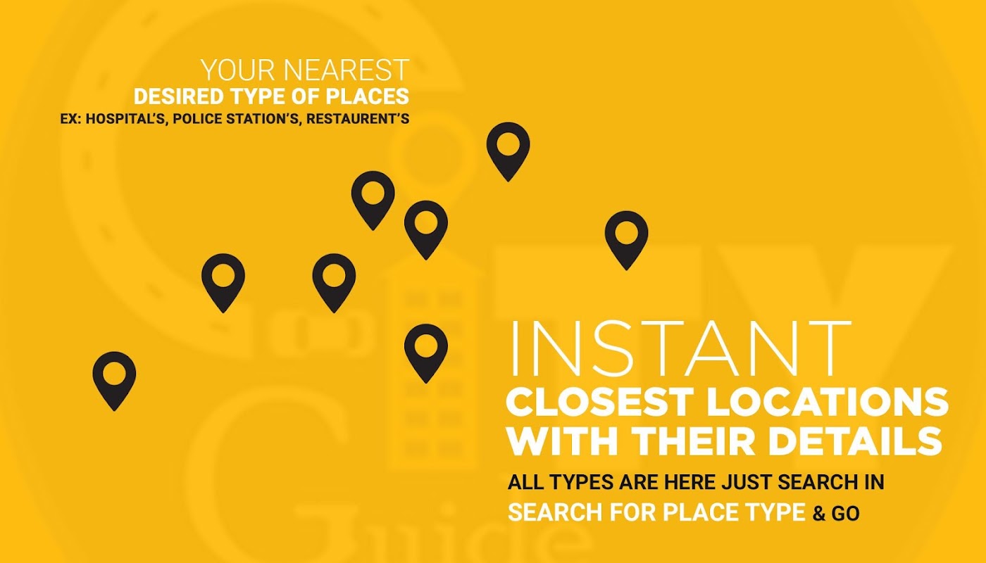 * Find any places type like hospitals, police stations, restaurants and so on.