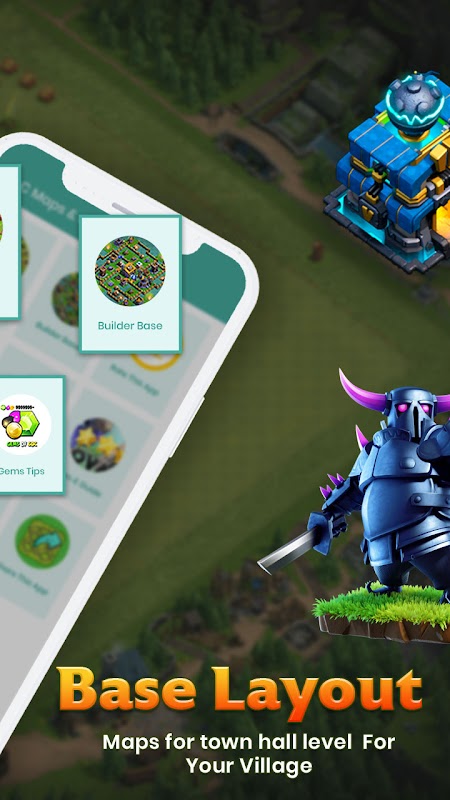 - Awesome base maps from town hall 4 to town hall 14: war, farming, trophy, etc.