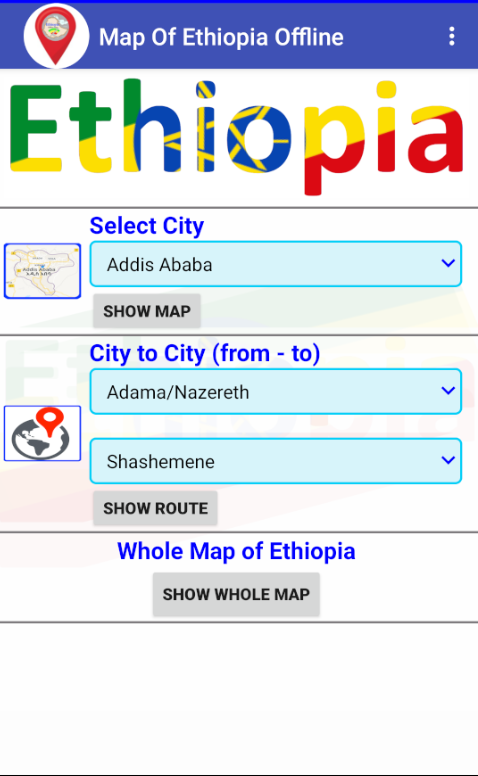 แผนที่แบบออฟไลน์สำหรับเอธิโอเปียเพื่อแสดงเส้นทางออฟไลน์และอื่น ๆ
