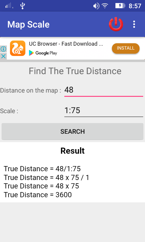 สำหรับการค้นหาแผนที่มาตราส่วนที่ระยะทางบนแผนที่และระยะทางทรู