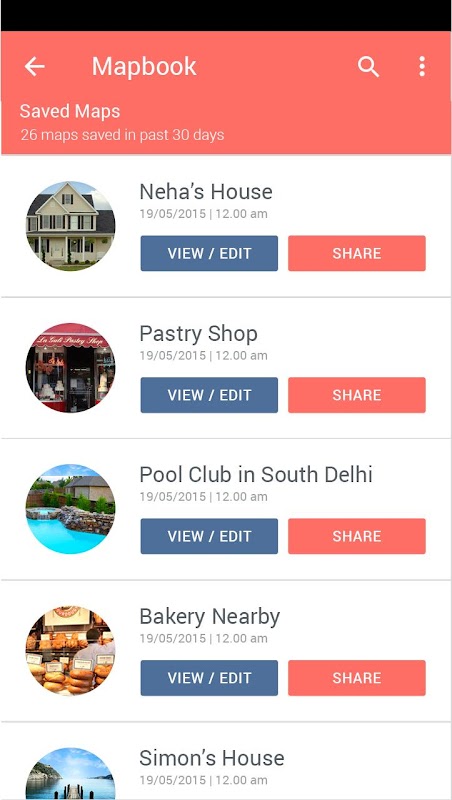 With Mapbook app you can store your map or location in a totally personalized way with photos, notes and can share your map with anyone you like. You can add photos from camera to your maps and mapped location. If you like to add some notes related to map location you can do that by simply Add Note option.