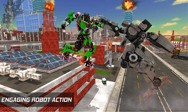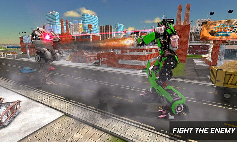 Use Joy stick to control the robot and find the enemy by using the map and kill within given time. Use buttons to fast run, jump, flip, sneak, block hit and set the target. Use screen swipe button to rotate the payer. You can also change weapons during fighting.