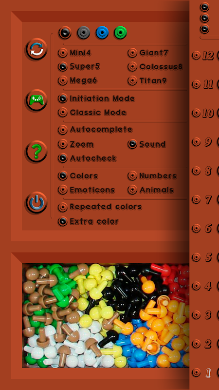 - Autocheck: when completing a row, the combination is verified automatically. If it is disabled, a button will appear to verify the combination.