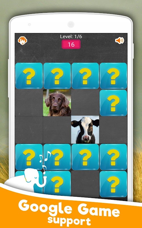 Train your memory, develop self and have fun learning new animal sounds. Improve your concentration, attention and speed of reaction by playing in memory game.