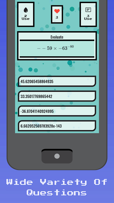 An advanced multiple-choice math quiz game for kids and adults. Play this game endlessly. Get some quiz questions. Chisel your brain with mind bending games. Improve your problem solving skills to cope up with life. No one likes problems.so, problem solving is power