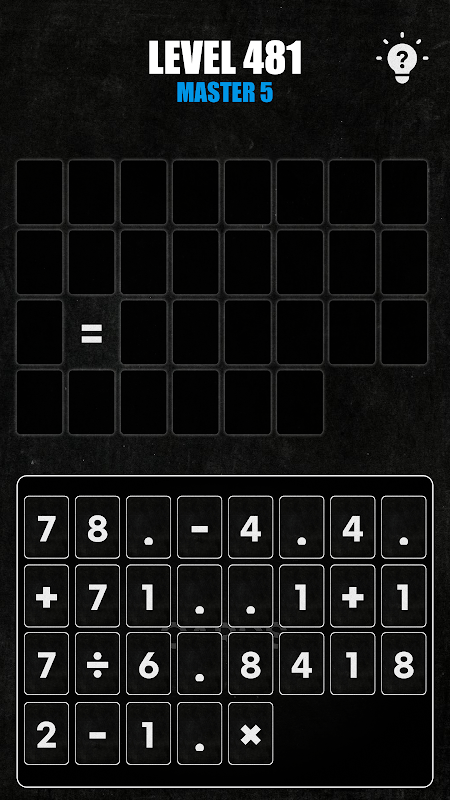 วางไพ่ตัวเลขที่กำหนดไว้ลงในช่องว่างเพื่อเติมสมการและไขปริศนา ตั้งแต่ปัญหาที่ง่ายเช่น "2 + 3 = 5" ไปจนถึงสมการที่ซับซ้อนมากเช่น "9.64 / 4.23 + 3.11 * 1.1 - 0.5 = 6.65 / 1 - 1.43" ความยากจะเพิ่มขึ้นตามขีดจำกัดของคุณ