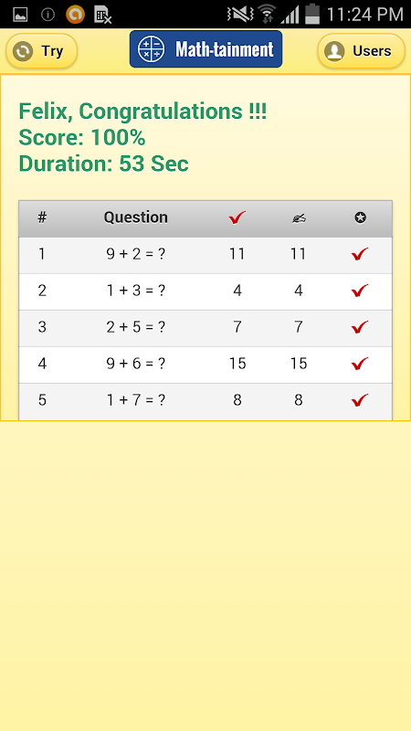 Math-tainment is a maths test with Add, Subtract, Multiply & Divide questions.