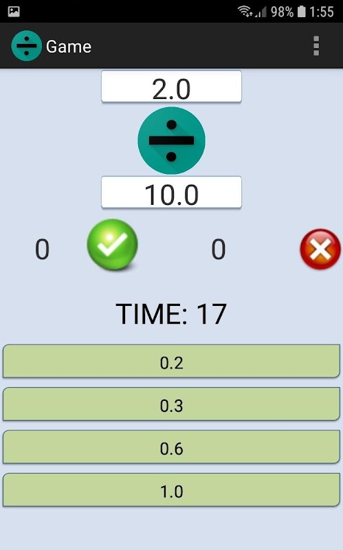 เกมคำนวณเชิงตัวเลข (แบบทดสอบ) ที่ใช้การหารเป็นหลัก